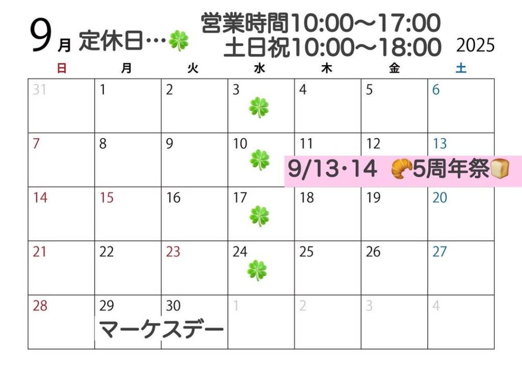 🌸 おかげさまで9月1日で OPENして5周年になります🍀 9月13日(土)14日(日)と 日頃の感謝を込めて 周年祭を開催予定です🌈 詳細はまたInstagramで 投稿させて頂きます🙈 9月もよろしくお願いします🧡 #fourleafClover幸せのパン屋さん #京都 #京都丹波 #道の駅丹波マーケス #丹波マーケス内幸せのパン屋さん