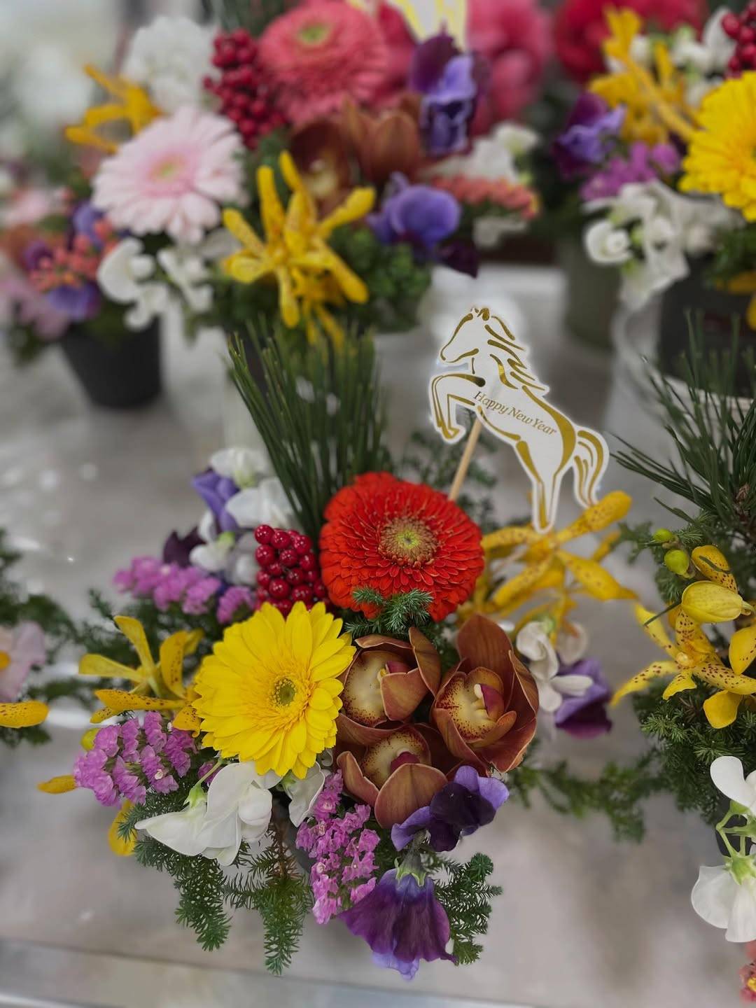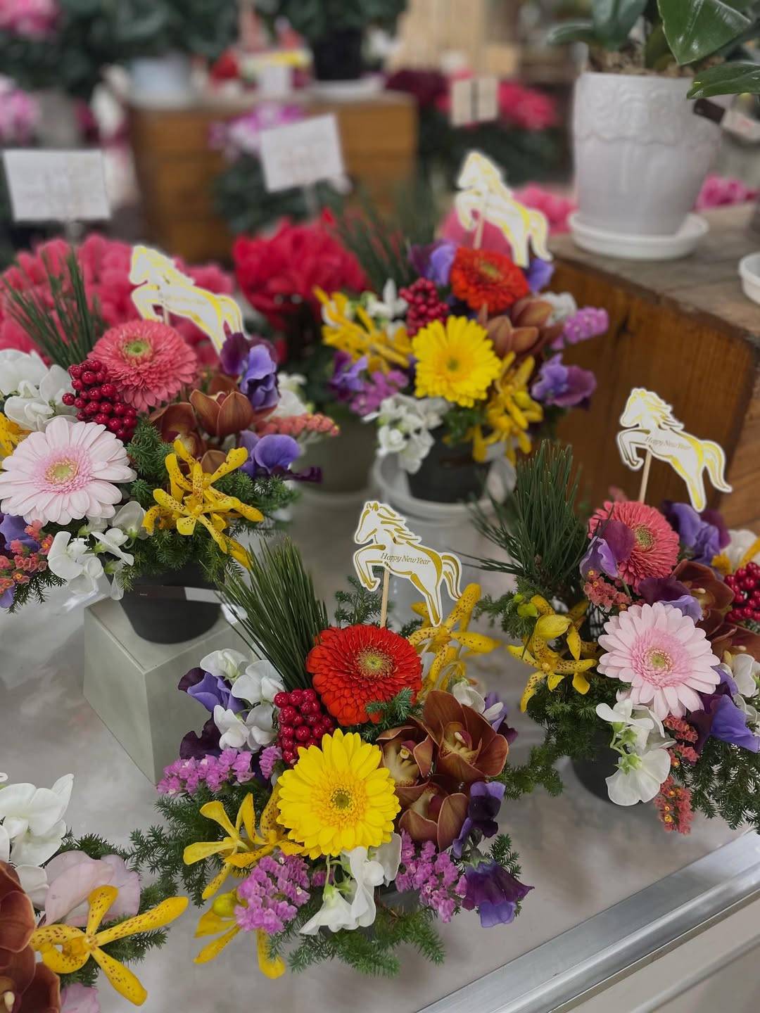 いずみ迎春・しめ縄とアレジメントby tamba-markedsに フラワーショップいずみon 投稿日: 2025年12月28日2025年12月28日 フラワーショップいずみマーケス店では、2026年の迎春に向けてしめ縄飾りとゴールドラインのお馬さんピック付き✨カラフル個性派 洋風の迎春アレンジメントをご用意しています。スタッフ手作りの可愛い個性的なお花で新しい年をお迎えください。 image-slider-with-thumbnail1.jpegimage-slider-with-thumbnail2.jpegimage-slider-with-thumbnail3.jpegimage-slider-with-thumbnail4.jpegimage-slider-with-thumbnail5.jpegimage-slider-with-thumbnail6.jpegimage-slider-with-thumbnail7.jpeg